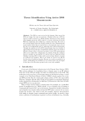 The DNS is a core service for the Internet. Most uses of the DNS are benign, but some are malicious. Attackers often use a DNS do- main to enable an attack (e.g. DDoS attacks). Detection of these attacks often happens passively, but this leads to a reactive detection of attacks. However, registering and configuring a domain takes time. We want to pro-actively identify malicious domains during this time. Identifying ma- licious domains before they are used allows to pre-emptively stop an attack before it happens. We aim to accomplish this goal by analysing active DNS measurements. Via the analysis of active DNS measurements there is a window of opportunity between the registration time and the time of an attack, to identify a threat before it becomes an attack. Active DNS measurements allows us to analyse the configuration of a domain. Using the configuration of a domain we can predict if it will be used for malicious intent. Machine Learning (ML) is often used to process large datasets, because it is efficient and dynamic. This is the reason we want to use ML for the detection of malicious domains. Since our results are predictive in nature, methodology for validation of our results need to be developed. Because, at the time of the detection no ground truth is (yet) available.