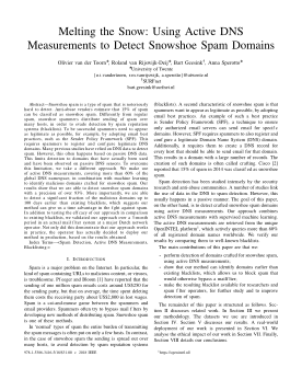 | Title | Melting the Snow: Using Active DNS Measurements to Detect Snowshoe Spam Domains |